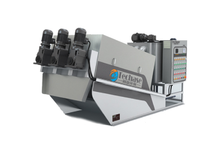 TECN Multi Plate Screw Thickener is a new type of mechanical waste water concentrating equipment developed by TECHASE Company, which is featured by low power consumption, high efficiency, stability, full-automatic control. It directly and also continuously concentrates the solids of the waste water from the secondary sedimentation tank from 2,000 mg/L to 100,000 mg/L. It replaces the sludge thickening pool which causes stinky smell and phosphorous and reduces the capital construction cost and land occupation.